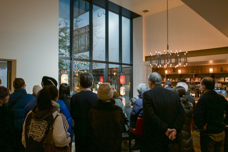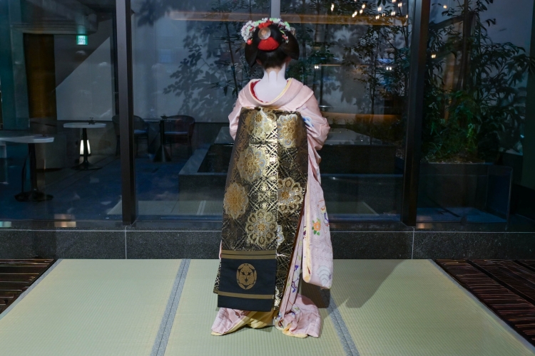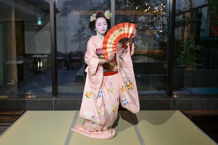 活動在HOTEL RESOL TRINITY KYOTO的大廳舉行。榻榻米空間營造出傳統日式茶室的氛圍。舞妓在柔和的三味線和笛聲中亮相。