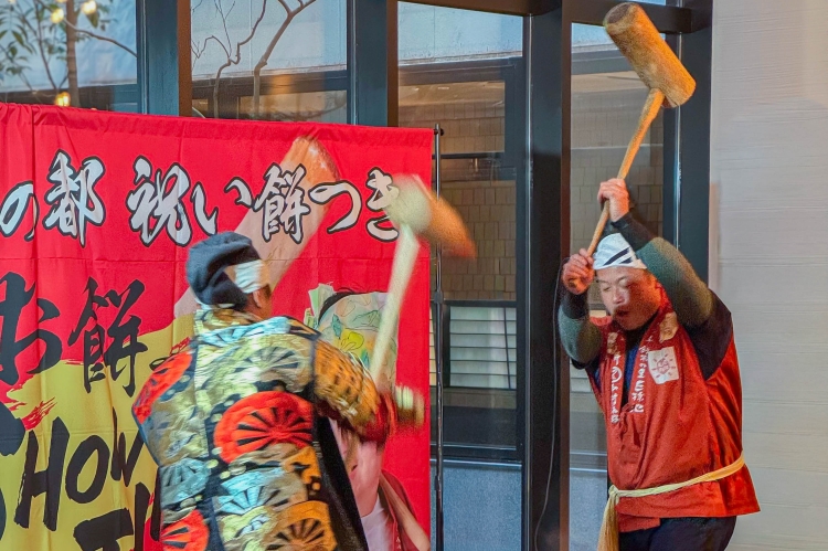 另外,表演結束後可參加搗年糕體驗。用臼和杵做年糕的時間,會讓人想起以前新年的情景,讓元旦的旅行變得更加特別。