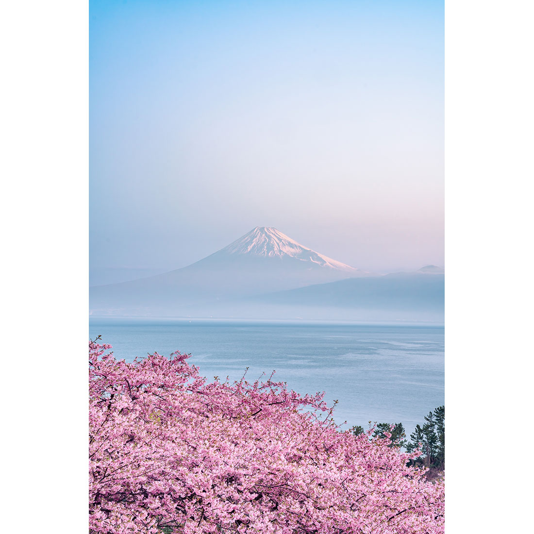 在太陽出來之前,世界有一個靜止的時刻。在寒冷的早晨的空氣中,凜然聳立的富士山和將其包圍般盛開的櫻花。佇立在中央的強有力的富士山肯定了黎明前的寂靜和平靜,向早晨變遷的希望。它給觀眾帶來了安靜的力量和專註,平靜和希望,就像冥想一樣敏銳。