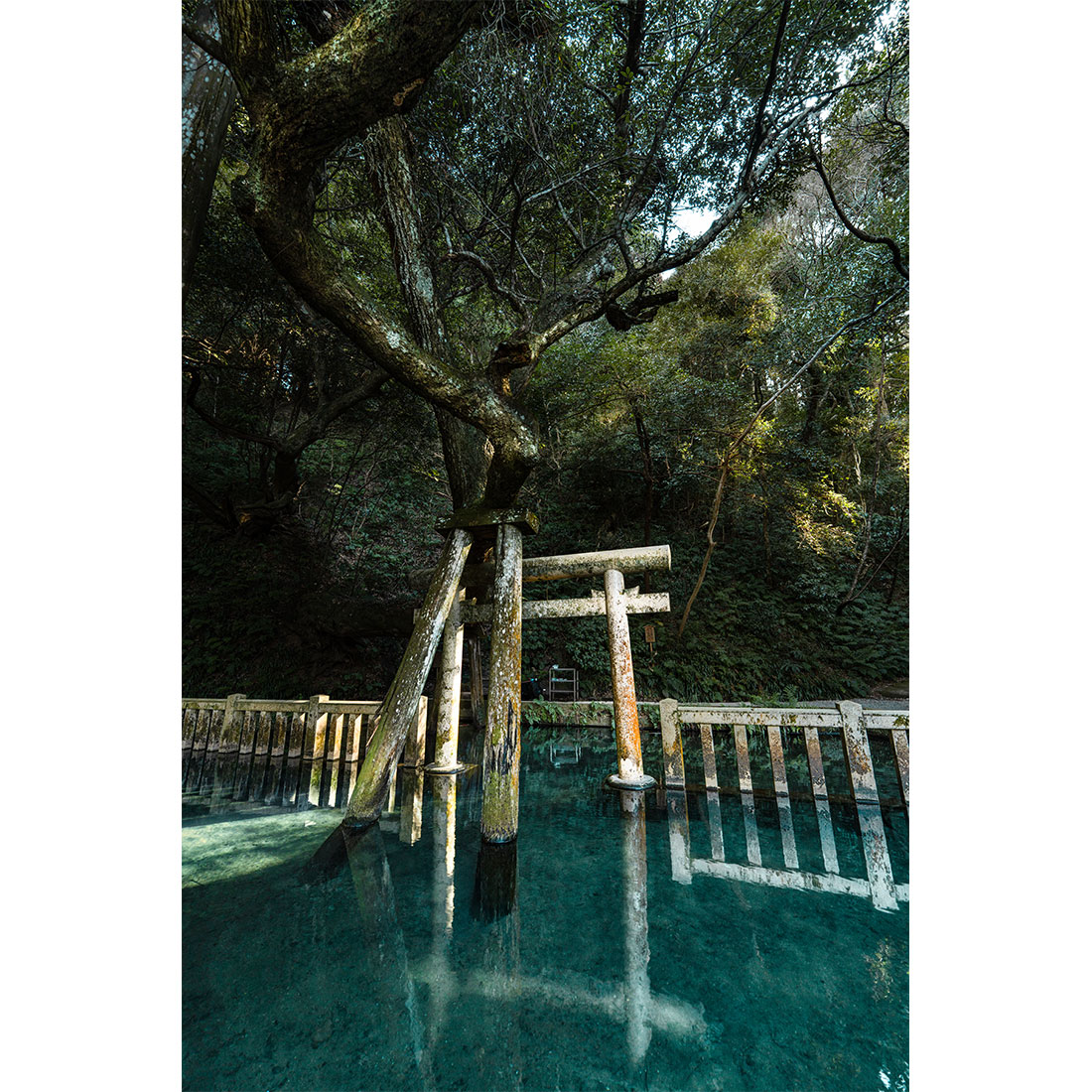 對比之下經過淨化與再生,呈現出生命不斷迴圈、不斷被清洗的神域 (水鳥居) 。